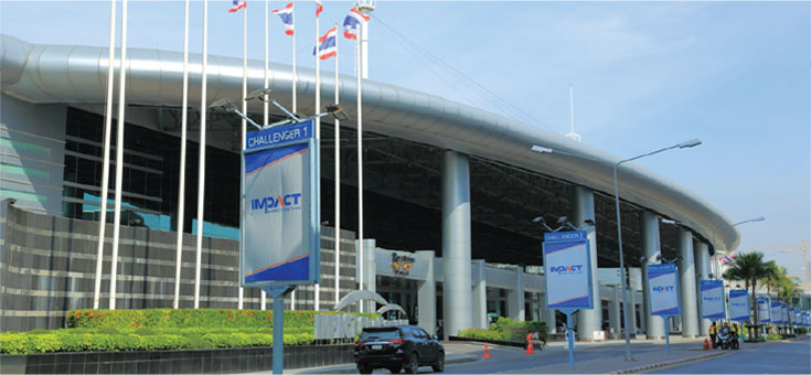 The Cent provides floor space totaling over 100,000 square meters offering enhanced product visibility, and maximizing sales potential. Loading areas are at the rear of the premises, with individual drive-in doors, 2 tons/square meters capacity for the floor and 3 ton/square meters capacity for handing points. Ceiling height in the exhibition hall is 21 meters, and there 14 meters is available as hanging points. A wide variety of food and beverage catering options are available for both exhibitors and visitors. Exhibitors will find its meals-on-the-go booth delivery service very convenient and time saving. For exhibitors and visitors, there is a 1,000-seat Food Court, serving local and international dishes. With its comprehensive and flexible layout, IMPACT Exhibition and Convention Center is ideal for shows of various sizes and configurations.